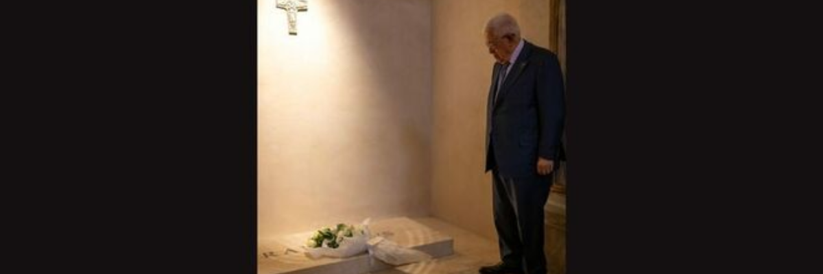 Ao chegar a Roma, o presidente Mahmoud Abbas visitou o túmulo do Papa Francisco na Basílica de Santa Maria Maior para um momento de reflexão. Sob forte esquema de segurança, às 16h30, o chefe de Estado palestino, acompanhado pelo padre Ibrahim Faltas, ex-vigário da Custódia da Terra Santa, e sua comitiva, entrou na basílica papal e saiu quinze minutos depois. Abbas depositou uma coroa de flores no túmulo de mármore com a inscrição "Francisco".