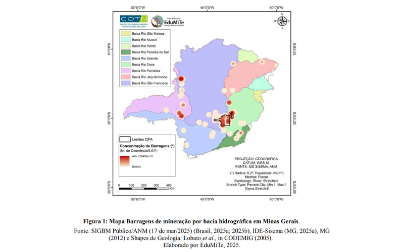 Dentre os 853 municípios de Minas Gerais, 60 possuem barragens de mineração, distribuídos em 6 bacias hidrográficas: São Francisco, Rio Doce, Rio Parnaíba, Parnaíba do Sul, Jequitinhonha e Rio Grande. Dentre estes 60 municípios, 26 localizam-se no QFA.