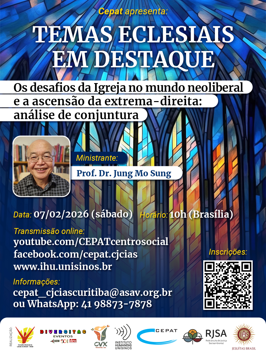 Os desafios da Igreja no mundo neoliberal e a ascensão da extrema-direita: análise de conjuntura é o tema do encontro [on-line] que o CEPAT promoverá no dia 07 de fevereiro, um sábado, às 10h, ministrado pelo Prof. Dr.  Jung Mo Sung, teólogo e cientista da religião, católico, leigo.