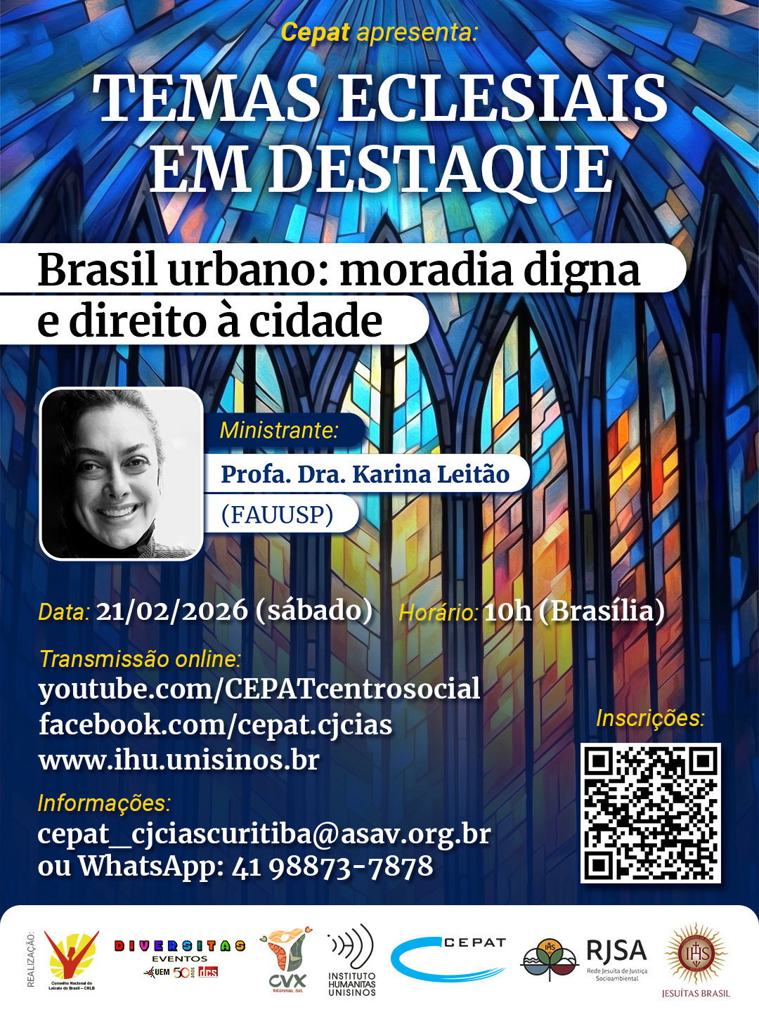 Brasil urbano: moradia digna e direito à cidade é o título do encontro [on-line] que o CEPAT promoverá no dia 21 de fevereiro, um sábado, às 10h, ministrado pela Profa. Dra.  Karina Leitão (FAUUSP). Com esta iniciativa, pretende-se oferecer subsídios para o aprofundamento do tema da CF 2026Fraternidade e Moradia.
