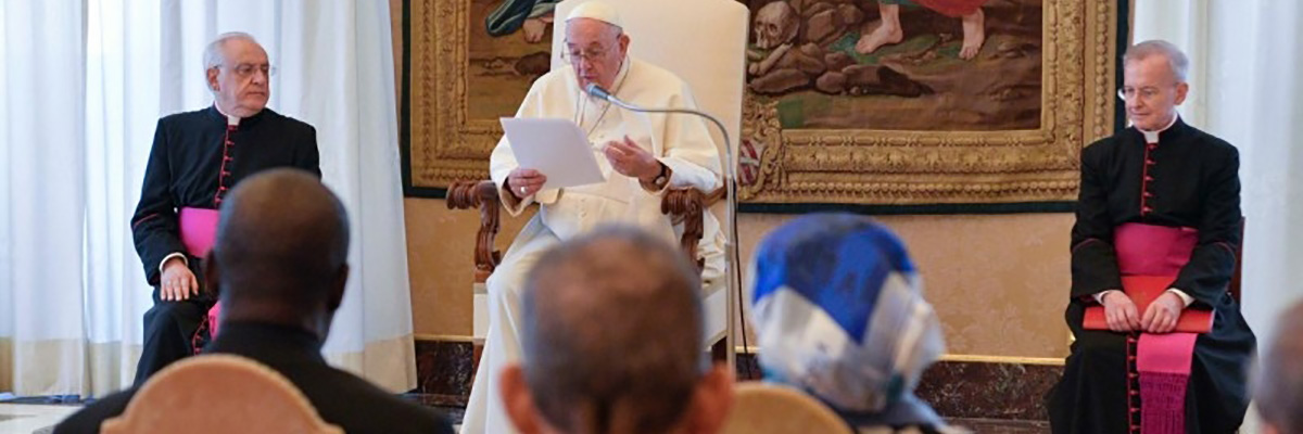 Encorajo-vos a prosseguir este projeto com entusiasmo e determinação, sem vos deixar seduzir pela tentação de recuar. Convido-vos a sonhar com uma comunidade acadêmica onde os candidatos ao ministério ordenado, os consagrados e as consagradas, e os leigos se formem em conjunto e ajudem as comunidades cristãs a tornarem-se sinais do Evangelho e centros de esperança.