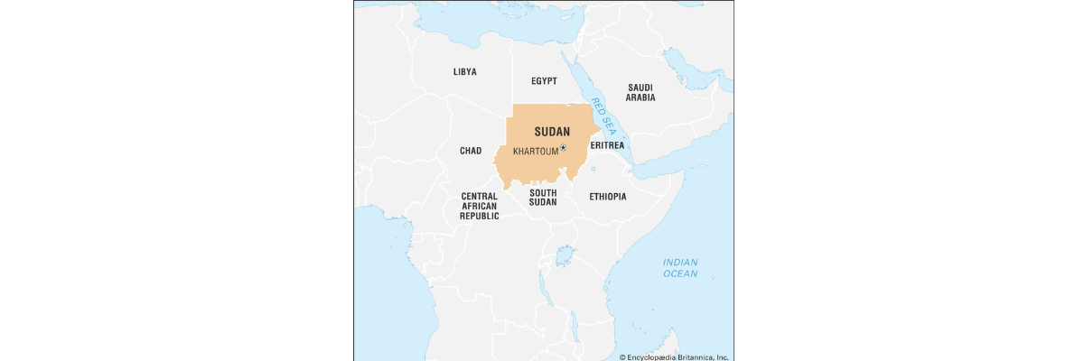 Localização do Sudão no continente africano. (Foto: Encyclopedia Brittanica)
