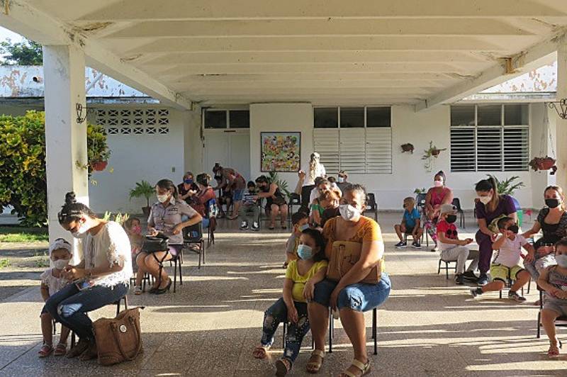 Mães, pais e responsáveis levam crianças aos centros de saúde pública em Cuba para vacinação contra a covid-19 (Foto: Karina Rodríguez Martínez | Cubadebate)