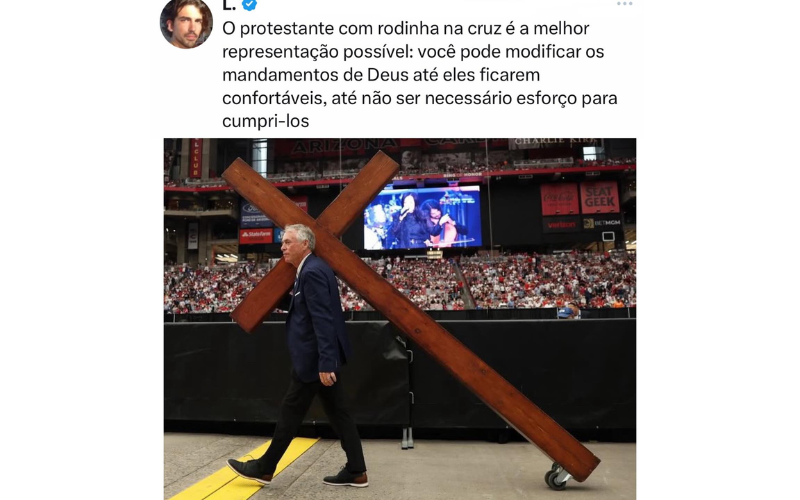 A cruz com rodinhas no funeral de Charlie Kirk mereceria alguns minutos de silêncio e uma reflexão pessoal de cada um de nós. Seria interessante ouvir, por exemplo, o que os católicos pensam da cruz com rodinhas: o símbolo da Paixão de Cristo transformado em um artefato portátil móvel que pode ser transportado por qualquer um, até mesmo por uma criança (claro, depende do tamanho, mas não tenho dúvidas de que pequenas cruzes com rodinhas estarão em breve disponíveis para as famílias de manifestantes).