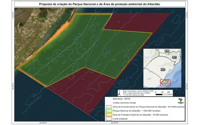 No último 06 de março o Governo Federal, por meio do Decreto 12.868, criou o Parque Nacional do Albardão, com 1.004.480 hectares, e a ele associado a Área de Proteção Ambiental do Albardão, com 55.983 hectares e a Zona de Amortecimento do Parque, com 558.025 hectares, num total de 1.618.488 hectares protegidos.