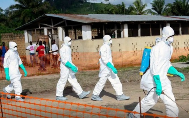 Serra Leoa, novembro de 2014: Profissionais cubanos do Contingente Internacional Henry Reeve em manobra de biossegurança durante a epidemia de Ebola. Foto: Ahmed Jallanzo | EPA | Agência Lusa | Agência Brasil