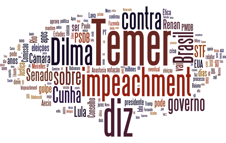 Gráfico mostra as palavras mais usadas em manchetes na época da votação do impeachment, na Câmara dos Deputados | Foto: Monitor do Debate Político/Reprodução