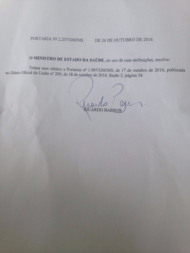 Depois de forte pressão do movimento indígena país afora, o ministro da Saúde Ricardo Barros revogou as portarias 1907 e 2141 que retiravam a autonomia da Secretaria Especial de Saúde Indígena (Sesai) e acabavam com o princípio da descentralização da gestão orçamentária e financeira do órgão aos Distritos sanitários Especiais de Saúde Indígena (DSEI´s). As portarias 2206 e 2207, desta quarta-feira, 26, revogam as anteriores e tudo volta ao normal, com as portarias 475/11 e 33/13 revalidadas, ou seja, autonomia da Sesai e descentralização do Subsistema de Saúde Indígena voltam a vigorar. A decisão do ministro foi comunicada durante uma reunião entre ele e uma comissão de indígenas do II Fórum Nacional de Educação Escolar Indígena, na tarde de hoje.