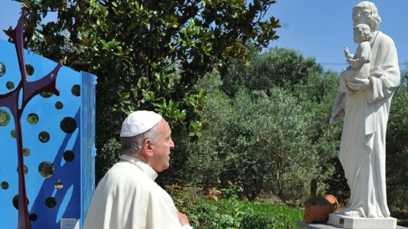 Papa Francisco em frente a Estátua de São José (Fonte: Religión Digital)