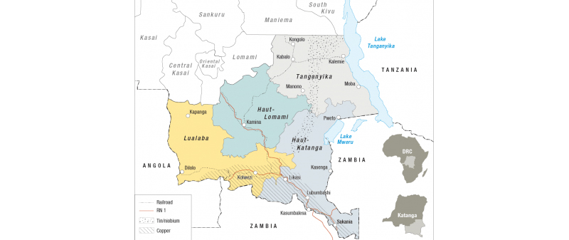 Em destaque no mapa, a antiga província de Katanga, na parte inferior esquerda, se localiza a província de Lualaba. Fonte: Crisis Group