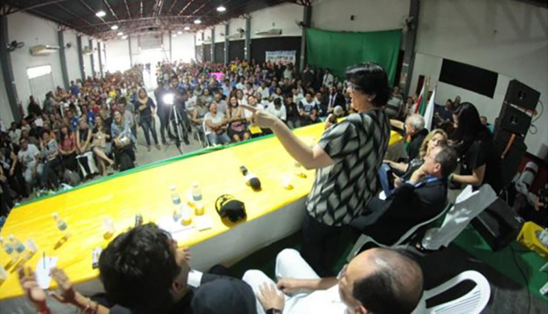 A ministra da Mulher, da Família e dos Direitos Humanos, Damares Alves, no lançamento do Abrace o Marajó, em Breves (PA): "Nós temos que levar uma fábrica de calcinhas para a ilha do Marajó, gerar emprego lá". (Foto: Willian Meira - MMFDH)