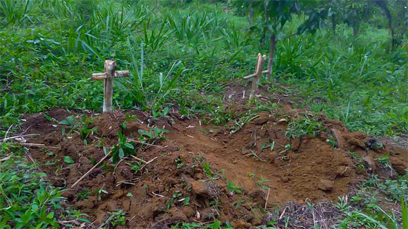 Sepulturas com cruzes cravadas foram colocadas como forma de ameaça a 100 metros da casa de Osvalinda e Daniel. (Foto: Osvalinda Pereira)