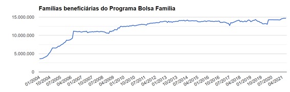 Um exemplo é o caso dos cortes no Programa Bolsa Família, que reduz a pobreza (incluindo a pobreza intergeracional), melhora as condições de saúde das crianças e, ao dar preferência às mulheres como beneficiárias do benefício, amplia as possibilidades de escolha das mulheres. O gráfico 1 mostra como o programa se expandiu rapidamente de 2004 a 2012, mas uma queda substancial na cobertura entre outubro de 2016 e julho de 2017, bem como de maio de 2019 a março de 2020. Por outro lado, a pobreza aumentava, ou seja, enquanto aumentava a demanda da população pelo programa.