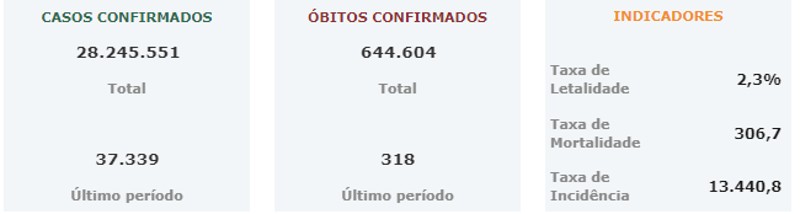 Conforme o Conselho Nacional de Secretários de Saúde (Conass), o país tem, ao todo, 644.604 mortos pela covid-19 oficialmente registrados, com mais de 28,2 milhões de casos desde o início da pandemia.