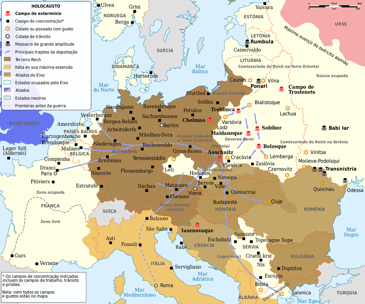Mapa do Holocausto na Europa (Fonte: Holocaust-Europe | Wikimedia Commons)