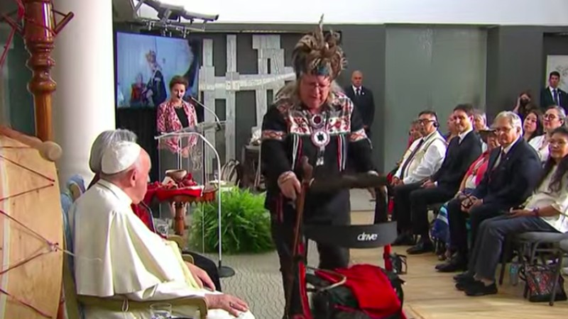 Neste ponto, o Papa voltou a lamentar “as políticas de assimilação e desengajamento, que incluíam o sistema de ensino residencial e que prejudicaram muitas famílias indígenas, desvalorizando sua língua, sua cultura e sua visão de mundo”. Um "deplorável sistema promovido pelas autoridades governamentais da época" no qual "várias instituições católicas locais estiveram envolvidas, pelo qual expresso vergonha e dor".