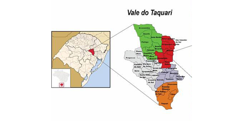 Área e localização do Vale do Taquari no contexto do Rio Grande do Sul.