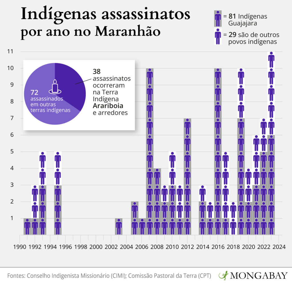 Entre 1991 e 2023, 81 indígenas Guajajara foram assassinados no Maranhão, mais de dois terços do total de assassinatos de indígenas em todo o estado, de acordo com dados do Conselho Indigenista Missionário e da Comissão Pastoral da Terra (CPT). Nenhum dos autores dos crimes foi julgado.