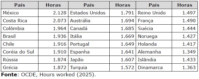 OCDE. (2025) Hours Worked. Acessado em 15 de maio de 2025. Disponível aqui.
