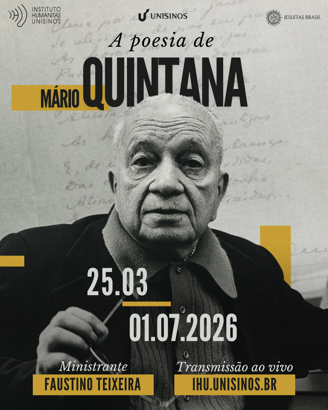 O curso apresenta um panorama da obra de um dos principais poetas líricos da literatura brasileira. Avesso à ostentação literária e atento às pequenas cenas do cotidiano — objetos, animais, gestos e sons —, Quintana construiu uma poesia marcada pela concisão, pela ironia sutil e pela abertura ao leitor comum.