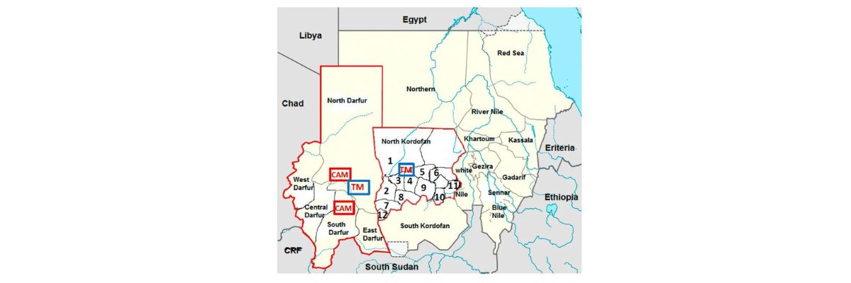 Mapa do Sudão mostrando Darfur e Kordofan. (Foto: ResearchGate)