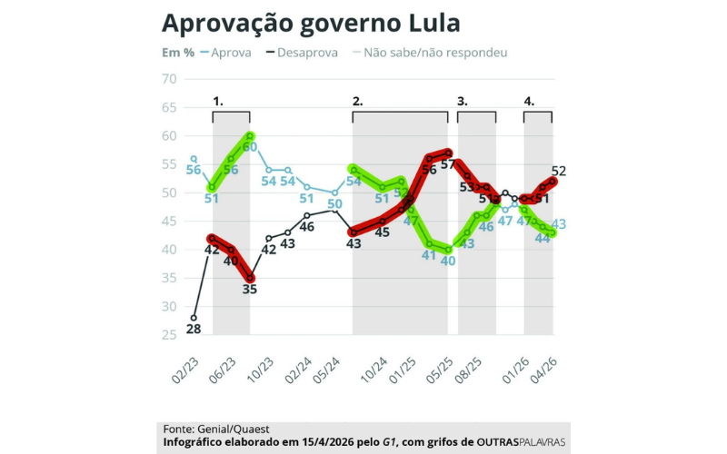 Gráfico da aprovação do governo Lula (Fonte: Genial/Quaest).