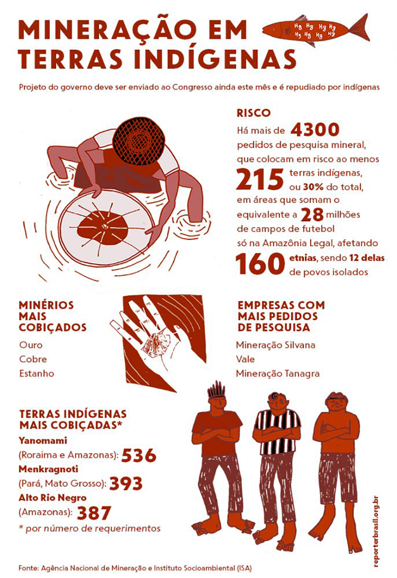 A atividade minerária no subsolo das aldeias é regida pela Constituição, em seu artigo 231, que garante aos indígenas a decisão sobre a exploração de suas terras ao dizer que o aproveitamento das “riquezas minerais só podem ser efetivados com autorização do Congresso Nacional, ouvidas as comunidades afetadas”. O País também segue, no que diz respeito a esse tipo de exploração, a Convenção 169 da OIT (Organização Internacional do Trabalho), que estabelece que os povos indígenas devem ser consultados em todas as etapas sobre eventual projeto de mineração.