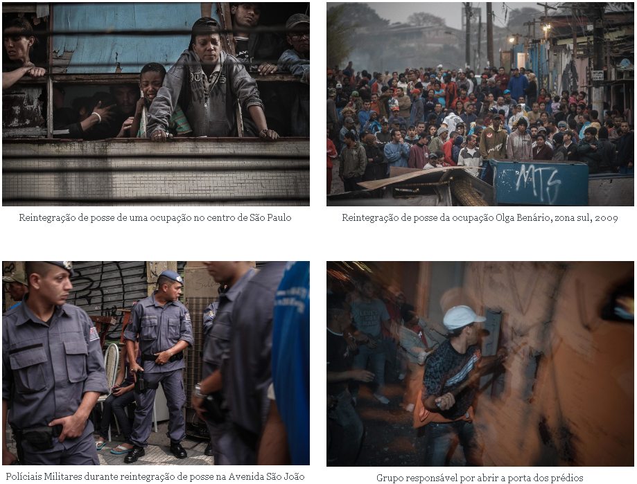 Desde então, passei a acompanhar todas as ocupações centrais e a conhecer pessoas que atuavam em ocupações na periferia da cidade. Testemunhei e fotografei todas as tentativas de reocupar a Prestes Maia nos últimos dez anos, a desocupação violentíssima do grande terreno ocupado no Pinheirinho, São José dos Campos, em janeiro de 2012, e certa vez, em uma favela na zona norte, tive que negociar com o tráfico para poder documentar as famílias ameaçadas de reintegração de posse.