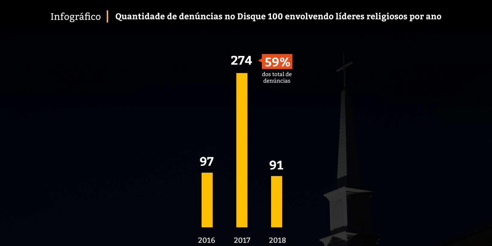 Nos últimos três anos, o Ministério da Mulher, da Família e dos Direitos Humanos recebeu 462 denúncias de violações cometidas por líderes religiosos – o equivalente a uma média de três denúncias por semana. O dado inédito, obtido pela Pública através da Lei de Acesso à Informação (LAI), revela que, desse total, 167 casos envolvem denúncias de violência sexual. Esse foi o tipo de denúncia mais comum que o ministério recebeu em 2016 envolvendo lideranças religiosas.