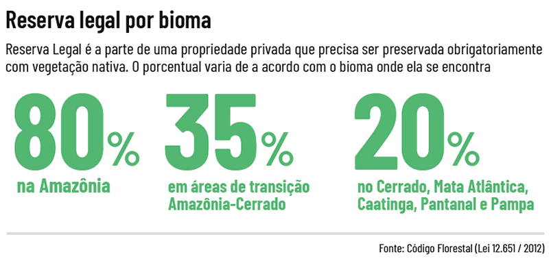 Nas áreas de Cerrado localizadas dentro da Amazônia Legal, esse índice é de 35%; e em todo o resto do País, 20%..