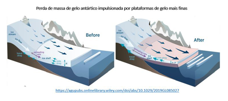 G. Hilmar Gudmundsson et. al. Instantaneous Antarctic ice-sheet mass loss driven by thinning ice shelves, Geophysical Research Letters, 20/11/2019. Leia aqui.