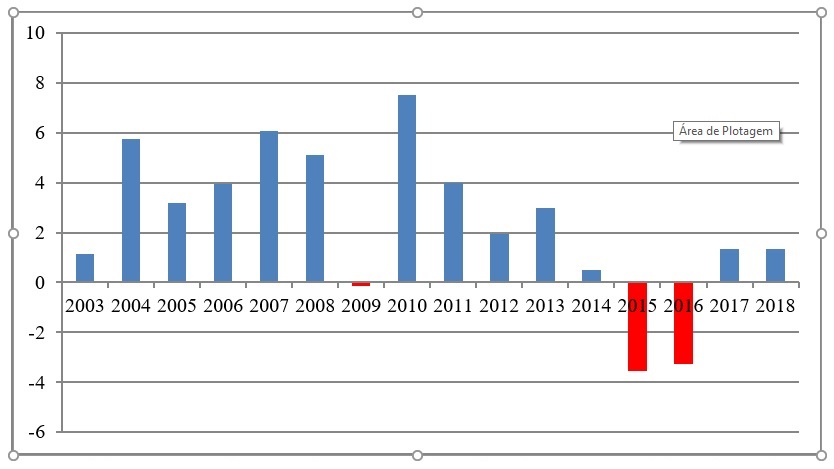 Gráfico 4. Produto Interno Bruto - Taxa de variação real no ano - Var. % anual (2003-2018)
