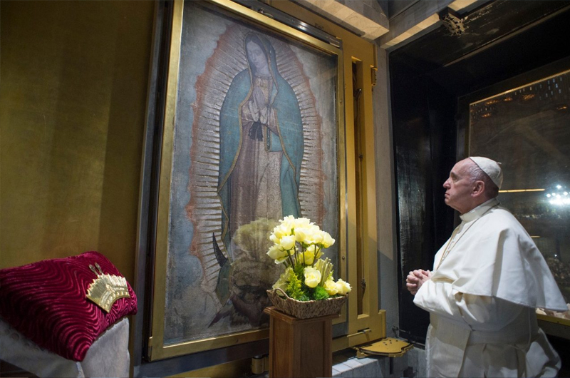 Papa Francisco reza diante da imagem de Nossa Senhora de Guadalupe. Foto: Vatican News