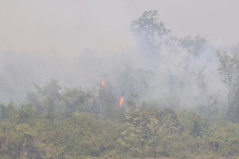 No Pantanal, perto de Corumbá (MS), não há sinal de azul no céu, apenas fumaça e fuligem (Foto: Repórter Brasil/Álvaro Rezende)