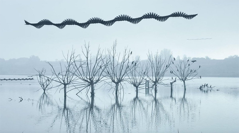Mas Bou tinha um plano e ele passou os últimos cinco anos a tentar capturar os esquivos contornos desenhados pelas aves em movimento, ou, como ele diz, "tornar visível o invisível".