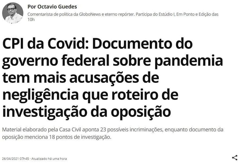 Ao se preparar para a CPI da covid, o governo pediu aos seus ministérios uma lista de possíveis negligências contra as quais teriam que se defender.