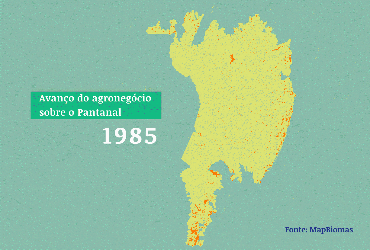 Na verdade, o agronegócio vem penetrando pelas bordas do Pantanal em um ritmo lento, porém constante. Em 1985, atividades agropecuárias ocupavam cerca de 4% do bioma. Hoje, esse índice chega a 16%, a maior parte ainda é criação de gado. Cultivos de soja respondem por 0,01% das áreas ocupadas por atividades humanas. Mas a pressão pela abertura de novas áreas para lavouras aumentou significativamente na última década porque a demanda supera a capacidade das lavouras existentes, mesmo que elas venham aumentando sua produtividade desde os anos 1980.