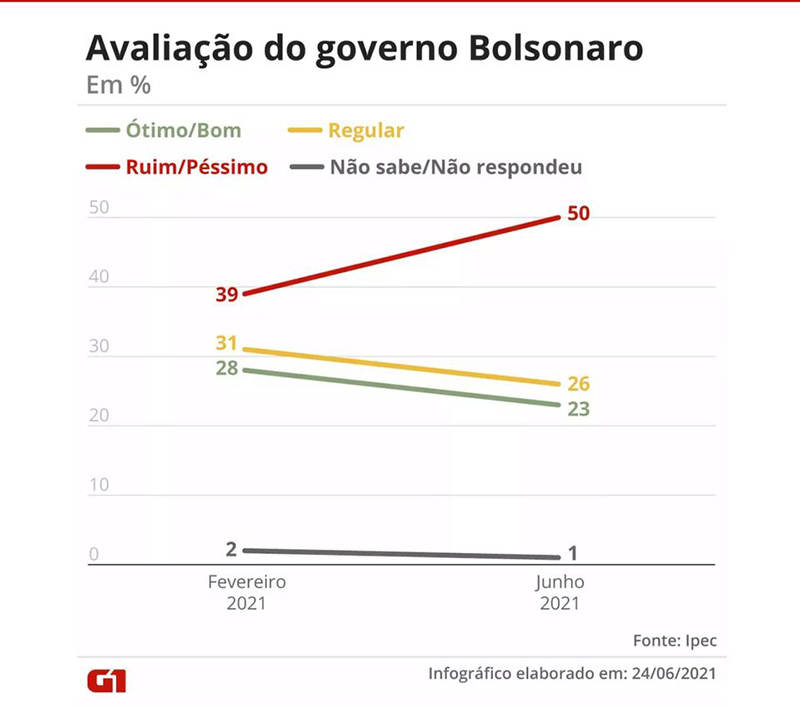 Levantamento Ipec, 2.002 pessoas, 141 municípios, publicação de hoje, pesquisa feita de 17 a 21 de junho, margem de erro 2 pontos.