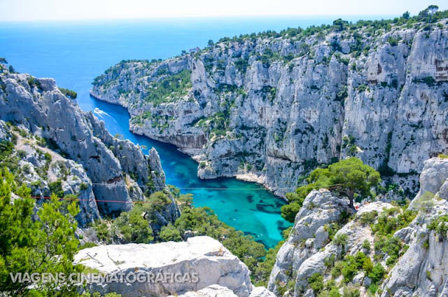 Anos atrás fui ao sul da França, numa viagem curta com meu filho e minha nora. Depois de assistirmos a um festival de jazz em Carcassone, viajamos a Nimes e de lá decidimos passar um dia ensolarado em Cassis, no litoral, onde um dos baratos é pegar um barco (há dezenas deles) para visitar os famosos calanques, espécies de cânions, que na verdade são grandes penhascos que se abrem em enormes grutas banhadas por um de mar cristalino de um azul impressionante. Os calanques são uma verdadeira obra de arte da natureza (foto abaixo).