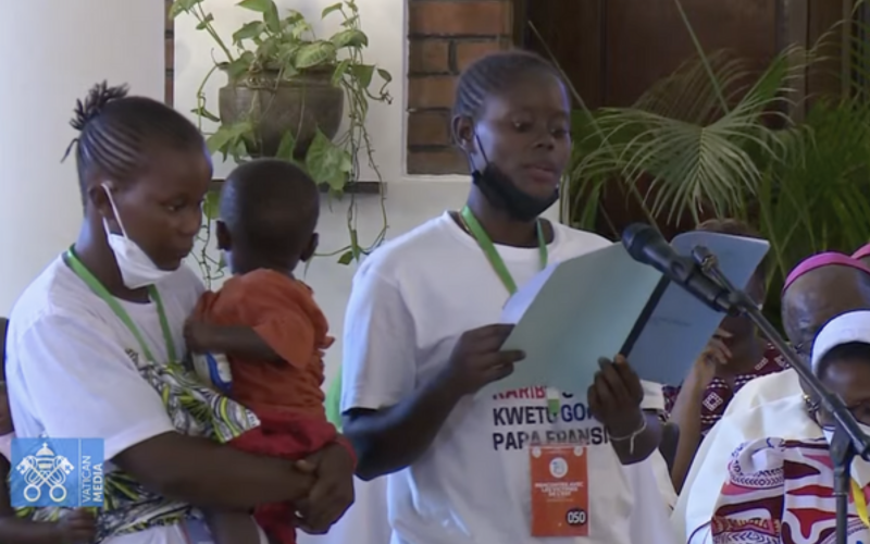 Irmãos, irmãs, filhos e filhas de Ituri, do Kivu do Norte e do Sul, estou com vocês, abraço-os e abençoo a todos. Abençoo cada criança, adulto, ancião, cada pessoa ferida pela violência na República Democrática do Congo, em particular cada mulher e cada mãe. E rezo para que as mulheres, todas as mulheres, sejam respeitadas, protegidas e valorizadas. Agredir uma mulher e uma mãe é fazer isso contra o próprio Deus, que tirou de uma mulher a condição humana, de uma mãe. Que Jesus, nosso irmão, Deus da reconciliação que plantou a árvore da vida da cruz no coração das trevas do pecado e do sofrimento, Deus da esperança que acredita em você, em seu país e em seu futuro, os abençoe e console; que espalhe a paz nos seus corações, nas suas famílias e em toda a República Democrática do Congo.