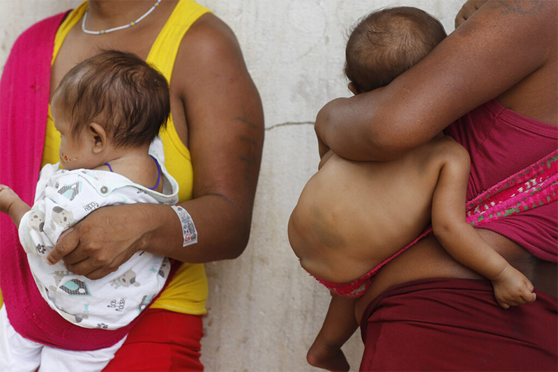 Crianças yanomami com as mães nos arredores da Casai em Boa Vista.