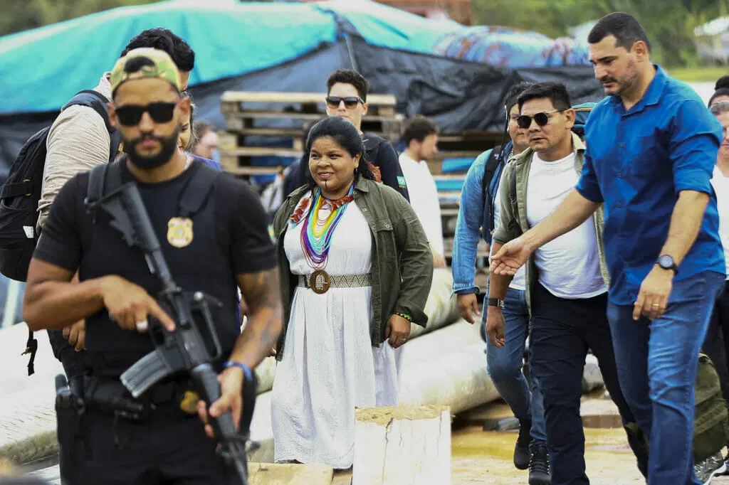 A ministra dos Povos Indígenas, Sônia Guajajara, durante visita a União dos Povos Indígenas do Vale do Javari (Univaja), em Atalaia do Norte (AM) para anunciar a retomada de ações de proteção a povos indígenas (Foto: Marcelo Camargo | Agência Brasil)