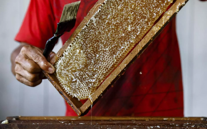 Colheita de mel na comunidade extrativista do arquipélago do Bailique, no Amapá. (Foto: Diego Baravelli/Greenpeace)