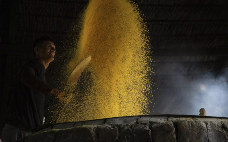 Economia de subsistência, não, de existência. Na imagem, a produção de farinha de macaxeira nos arredores do rio Manicoré, no estado do Amazonas. (Foto: Nilmar Lage/Greenpeace)