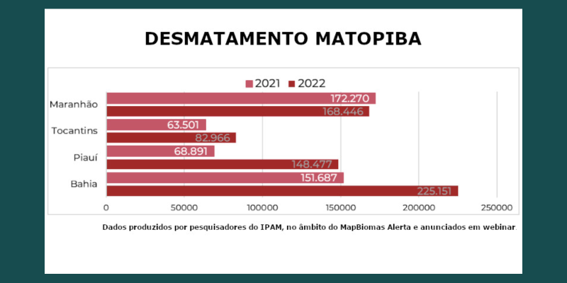 Houve aumento da destruição de mata nativa em todos os estados, informa o CicloVivo. Na Bahia, foram 225 mil hectares desmatados, 48% a mais do que em 2021. Maranhão e Tocantins registraram 168 mil e 83 mil hectares desmatados, respectivamente. Mas o maior aumento percentual ocorreu no Piauí, que saltou 115% em relação ao ano anterior, chegando a cerca de 152 mil hectares em 2022.