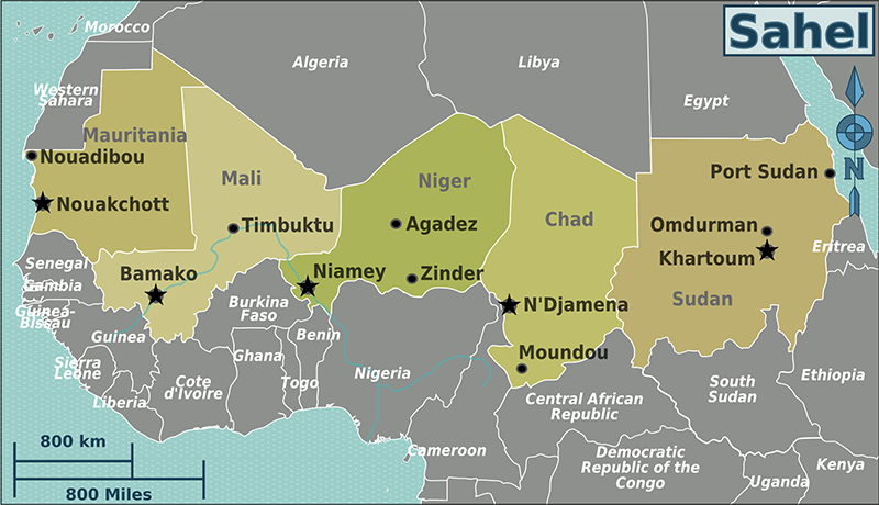 Mapa da região do Sahel | Foto: Peter Fitzgerald | Wikimedia Commons