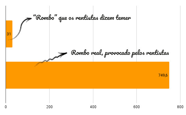 8. E compare, agora, os R$ 31 bilhões do “rombo” suposto para 2025 pelo “mercado” (lembre-se: são os rentistas, que enriquecem sem nada produzir) com o rombo real, de R$ 749,6 bi representado pelo pagamento de juros ao 0,1% mais rico. Não há dúvida: os mercados financeiros dão escândalo por um possível déficit vinte e quatro vezes menor do que aquilo que, com toda certeza, capturarão da sociedade em 2025… — assim como fazem, ano após ano, há pelo menos quatro décadas.