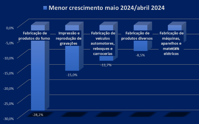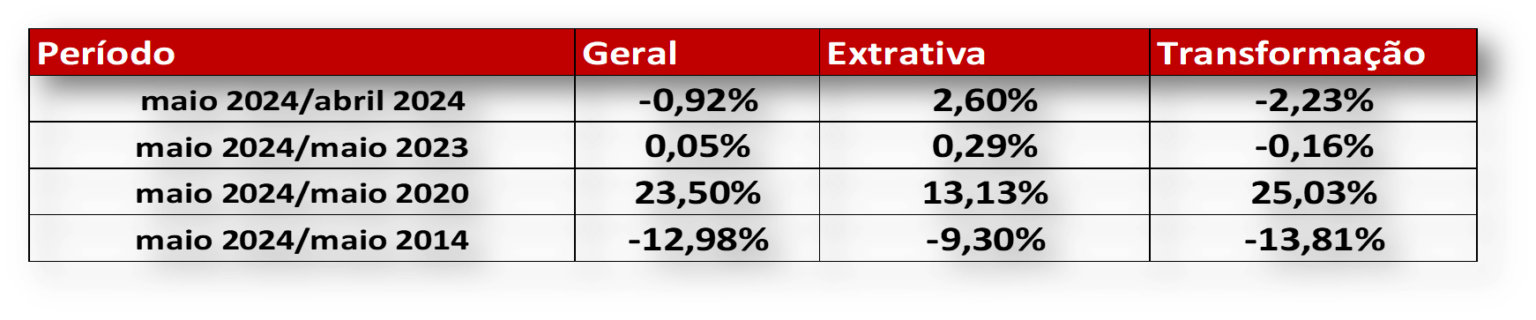 Os dados da Pesquisa Mensal da Indústria (PMI), do IBGE, referente ao mês de maio, mostra uma queda de 0,92% na indústria geral, uma alta de 2,6% na extrativa e queda de 2,23% na indústria de transformação, justamente aquela que impacta mais a economia.