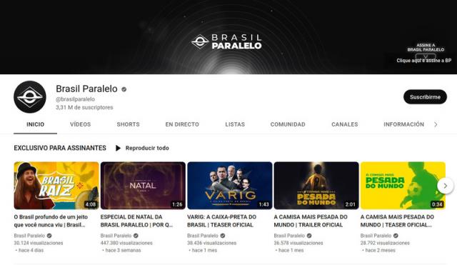 Grande golpe do canal Brasil Paralelo no YouTube. (Fonte: Youtube Brasil Paralelo)
