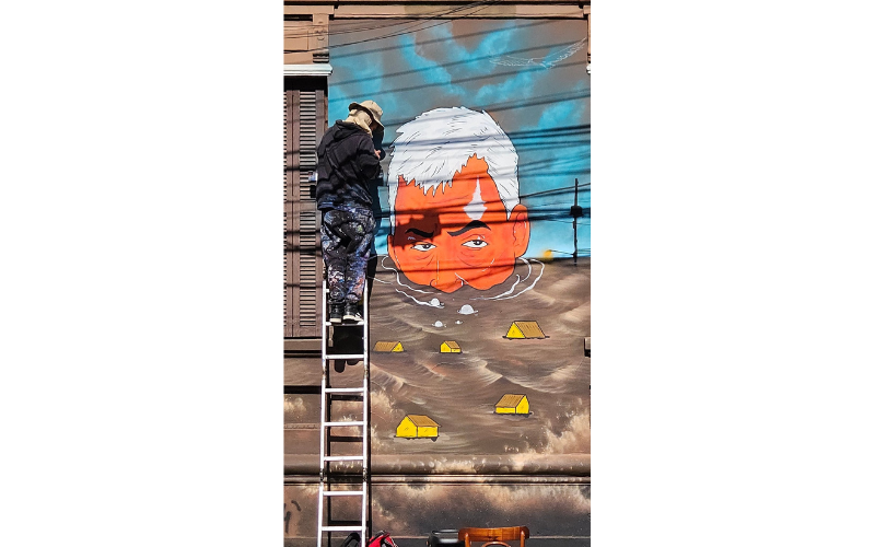 Em cumprimento à decisão judicial, da 113ª Zona de Porto Alegre, o artista Filipe Harp e o Casaverso derrubaram as paredes do estabelecimento, que fica na Cidade Baixa, uma arte que ilustrou o prefeito Sebastião Melo (MDB) submerso na enchente. Inspirado na arte do professor e artista Bruno Ortiz Monllor, o mural tinha partes idênticas ao que havia sido pintado por Harp em junho na Praça Argentina e apagado posteriormente por uma empresa que tem contrato com a prefeitura, segundo informou o Sul21.